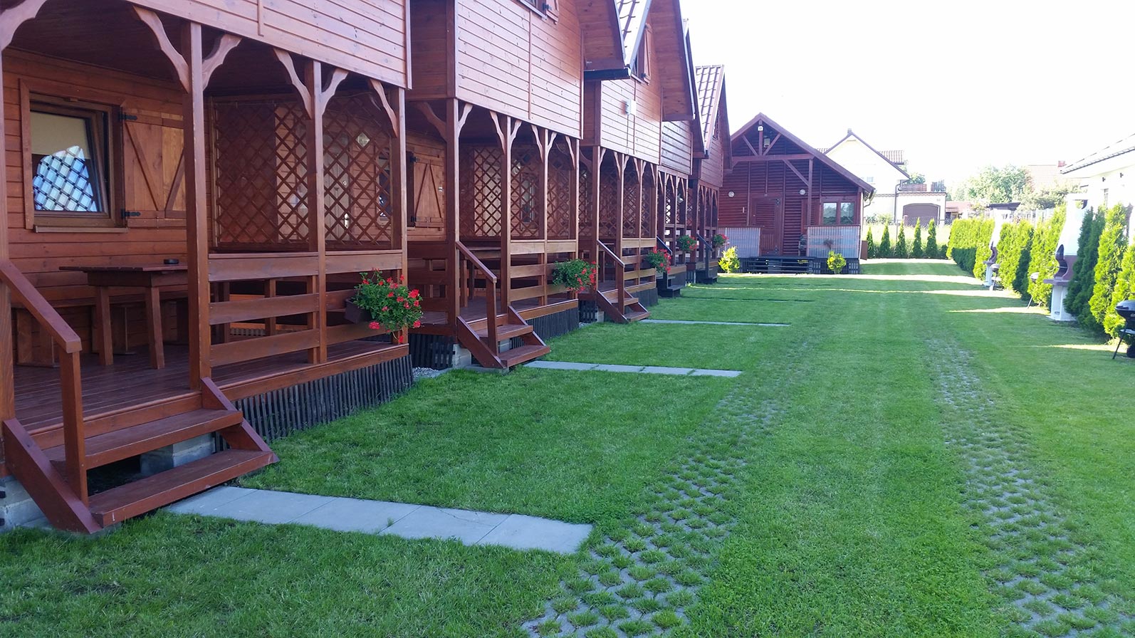 Kameralne domki usytuowane są około 380 m od morza. Przed każdym domkiem znajduje się taras z krzesłami i stołem tarasowym oraz grillem. Posesja jest bezpieczna dla dzieci, ogrodzona płotem. Posiadamy piaskownicę, huśtawki i zjeżdżalnię.